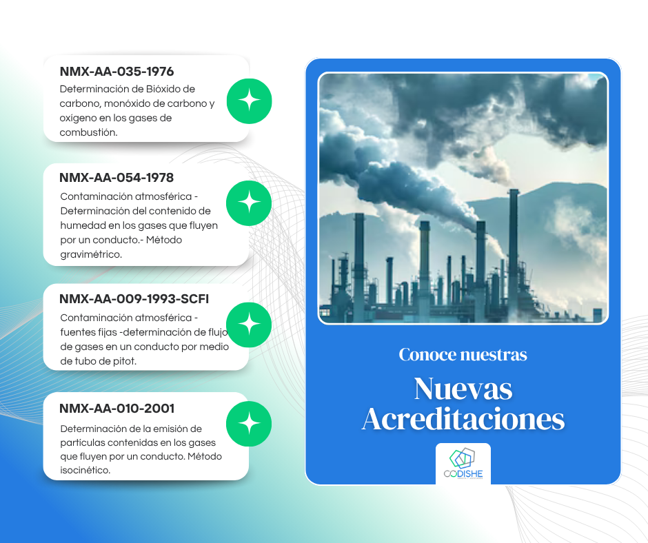 CODISHE ARRIETA Y ASOCIADOS ha sido acreditado por la Entidad Mexicana de Acreditación EMA como Laboratorio de Ensayo bajo la norma NMX-EC-17025-IMNC-2018 (ISO/IEC 17025:2017). Requisitos generales para la competencia de laboratorios de ensayo y de calibración, para la rama de Ambiente Laboral.